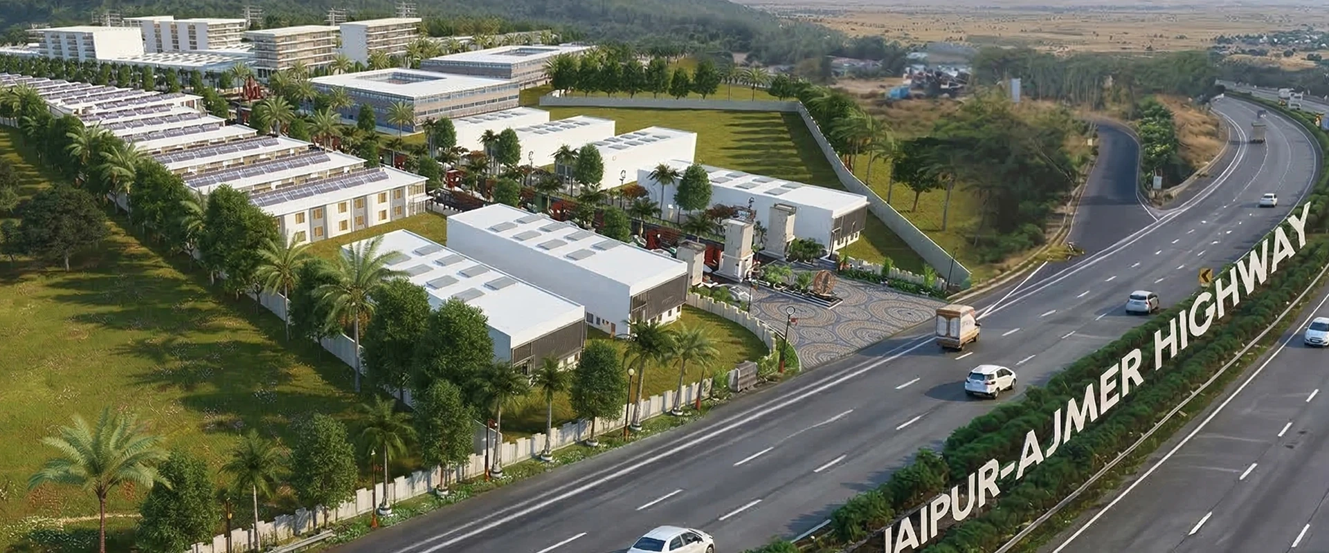Bagru, on the Jaipur–Ajmer Expressway (NH-8), is already home to major manufacturing, textile, and logistics hubs — making it a natural environment for businesses to thrive.